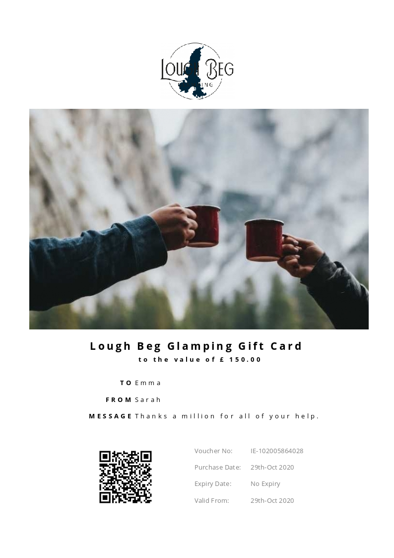 Lough Beg Glamping allows you to purchase instantly printable gift vouchers, special offers and tickets using the Voucher Connect platform.